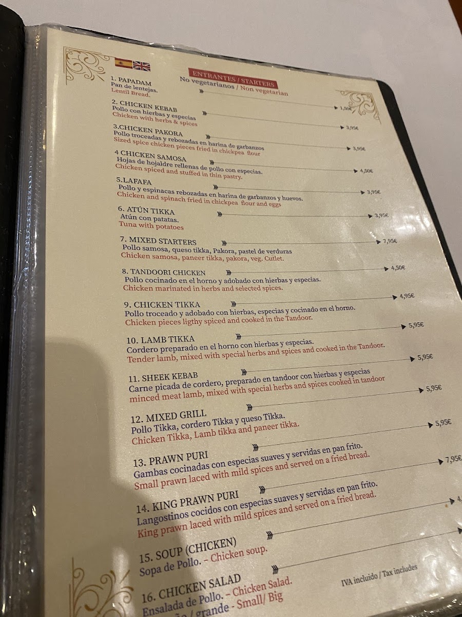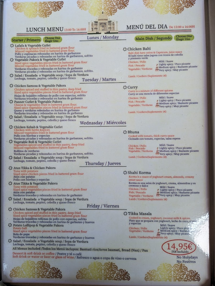 The standout feature is their enticing menu del día priced at just €14.50, offering a delightful two-course meal complete with naan, a drink, dessert, and coffee or tea. Previously delighted customers have praised the variety, from crispy chicken samosas to flavorful chicken curry, complemented by different chutneys that tantalize the palate.